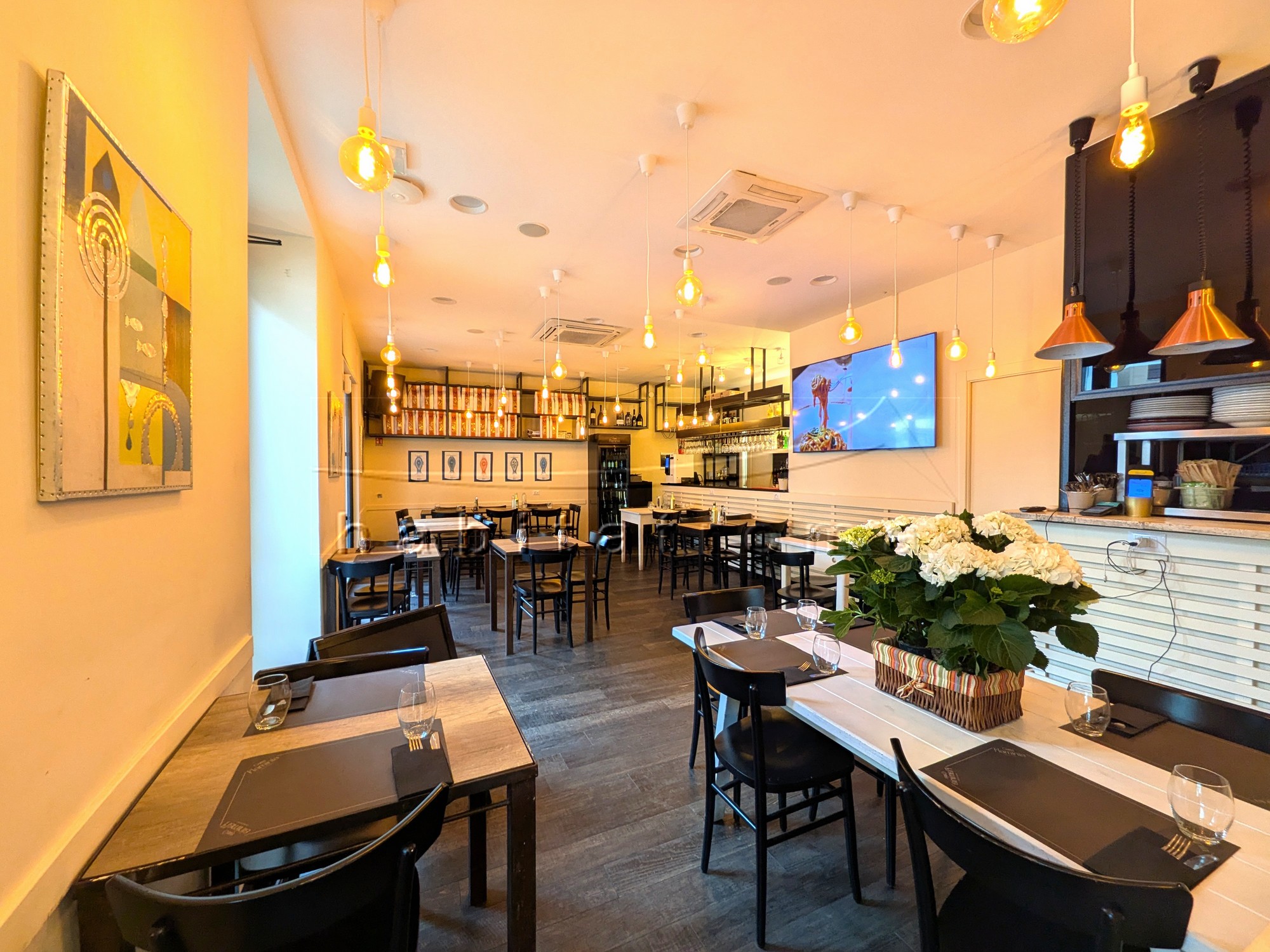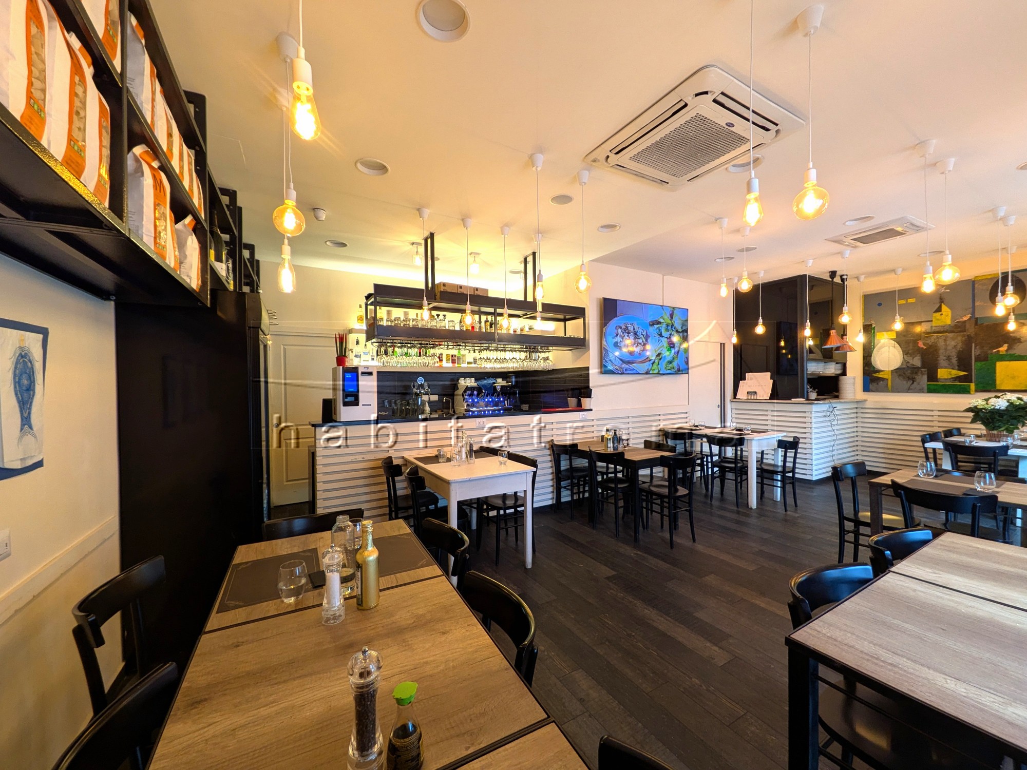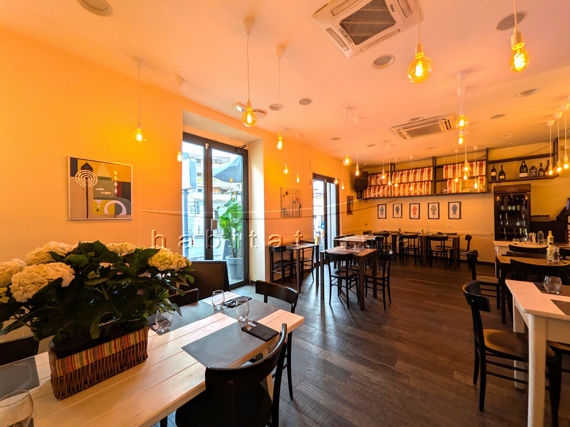 Il locale, ristrutturato e finemente arredato, si sviluppa su un unico piano fronte strada di 81mq e dispone di tre porte di accesso, una sala somministrazione di 49mq, bancone bar, ampia cucina completamente attrezzata, magazzino/deposito, servizi doppi e spogliatoio per dipendenti.
