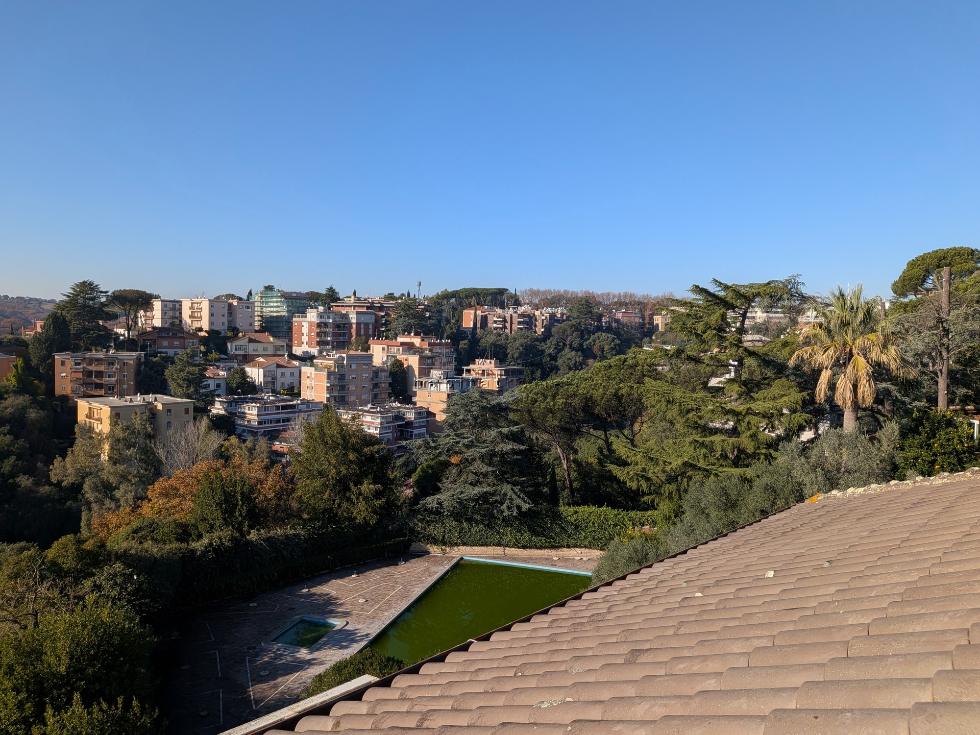 Gode di un affaccio panoramico nel verde, con vista sul parco dell’insugherata, ed è dotato di riscaldamento ed acqua calda centralizzati ed aria condizionata.
